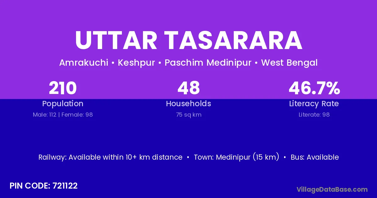 Uttar Tasarara village is located in the Keshpur Subdivision of the Paschim Medinipur district in West Bengal.