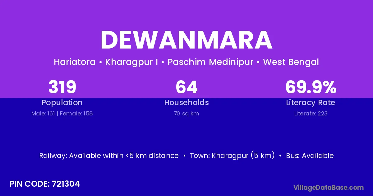 Dewanmara village is located in the Kharagpur I Subdivision of the Paschim Medinipur district in West Bengal.