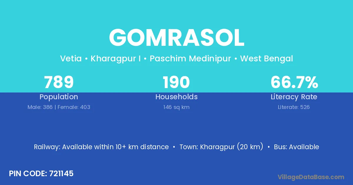 Kharagpur (20 km) is the nearest town to Gomrasol village for major economic activities and is located approximately 20 km away.