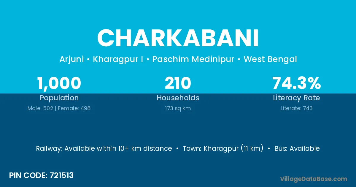 Kharagpur (11 km) is the nearest town to Charkabani village for major economic activities and is located approximately 11 km away.