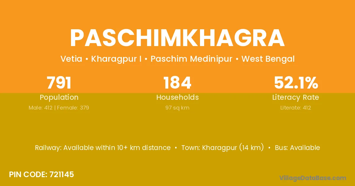 According to Census 2011 information, the village code of Paschimkhagra village is 721145.