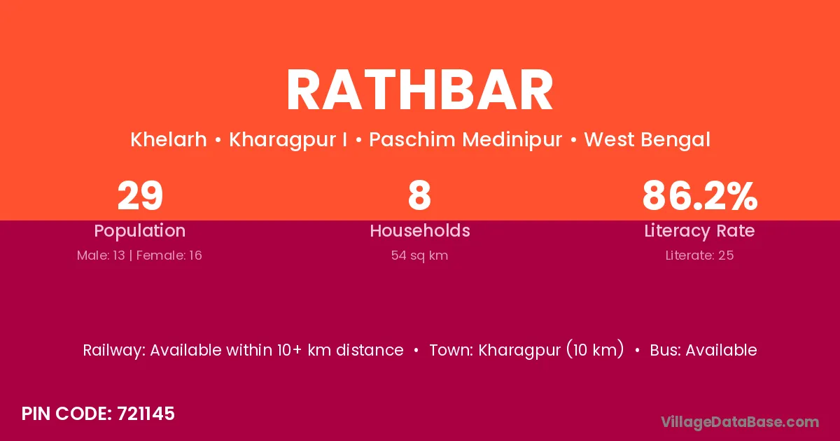 Rathbar village is located in the Kharagpur I Subdivision of the Paschim Medinipur district in West Bengal.