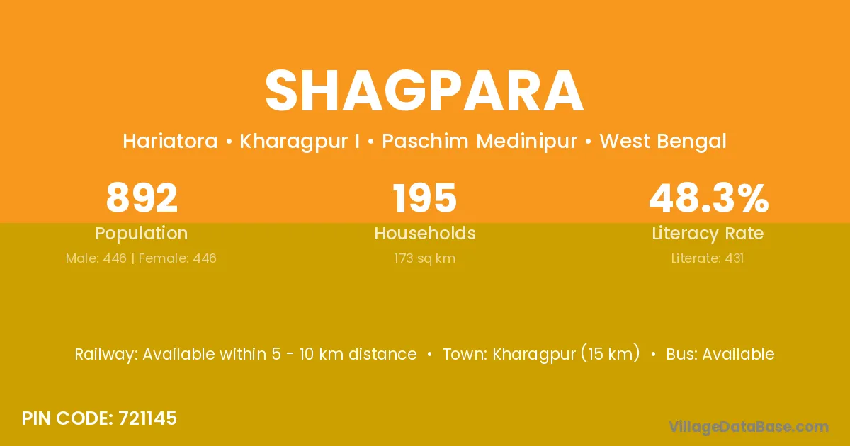 Shagpara village is located in the Kharagpur I Subdivision of the Paschim Medinipur district in West Bengal.