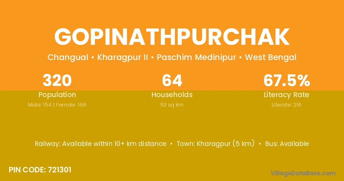 Kharagpur (5 km) is the nearest town to Gopinathpurchak village for major economic activities and is located approximately 5 km away.