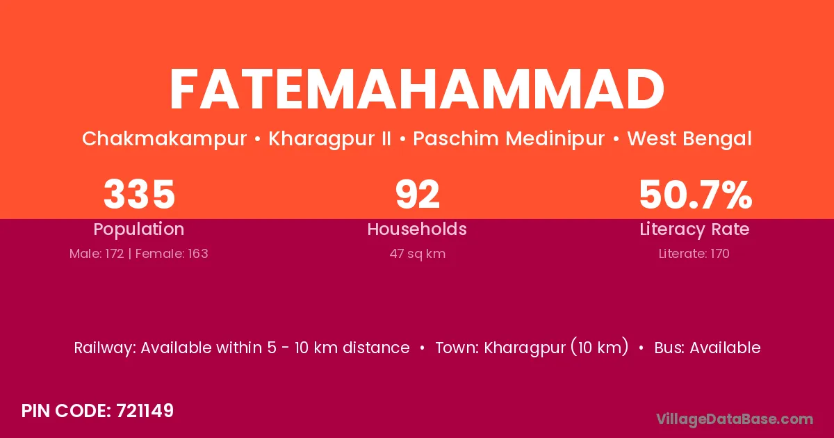 Kharagpur (10 km) is the nearest town to Fatemahammad village for major economic activities and is located approximately 10 km away.