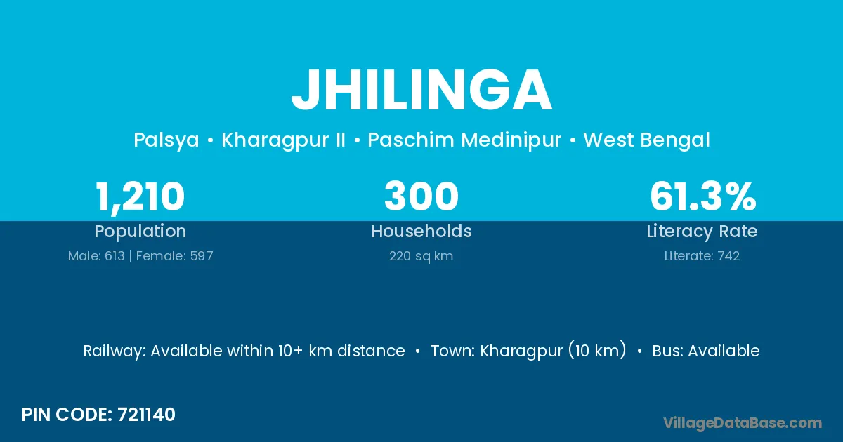 Jhilinga village is located in the Kharagpur II Subdivision of the Paschim Medinipur district in West Bengal.