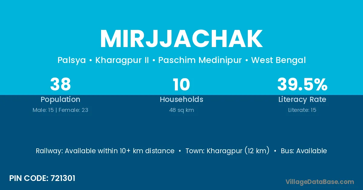 Kharagpur (12 km) is the nearest town to Mirjjachak village for major economic activities and is located approximately 12 km away.