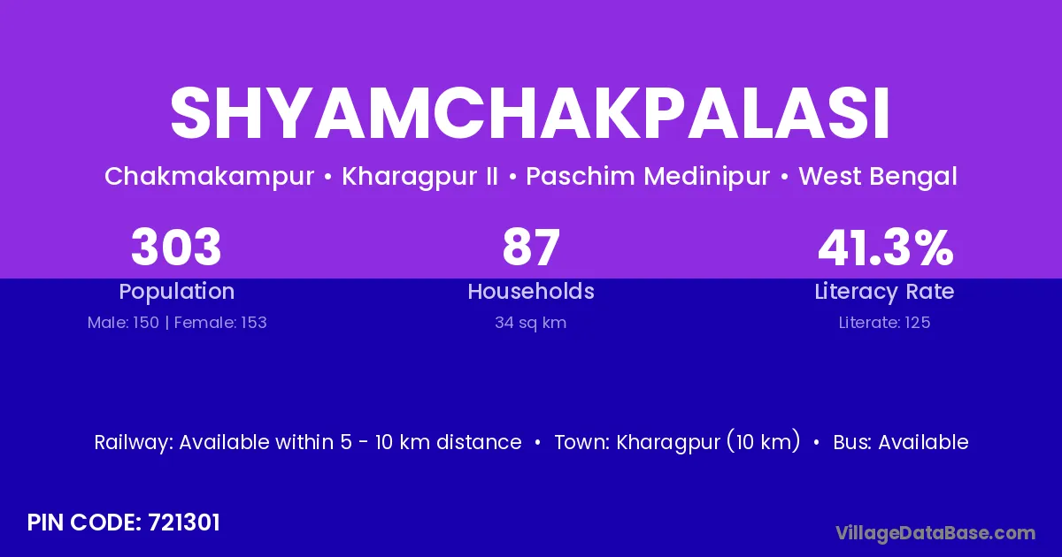 According to Census 2011 information, the village code of Shyamchakpalasi village is 721301.