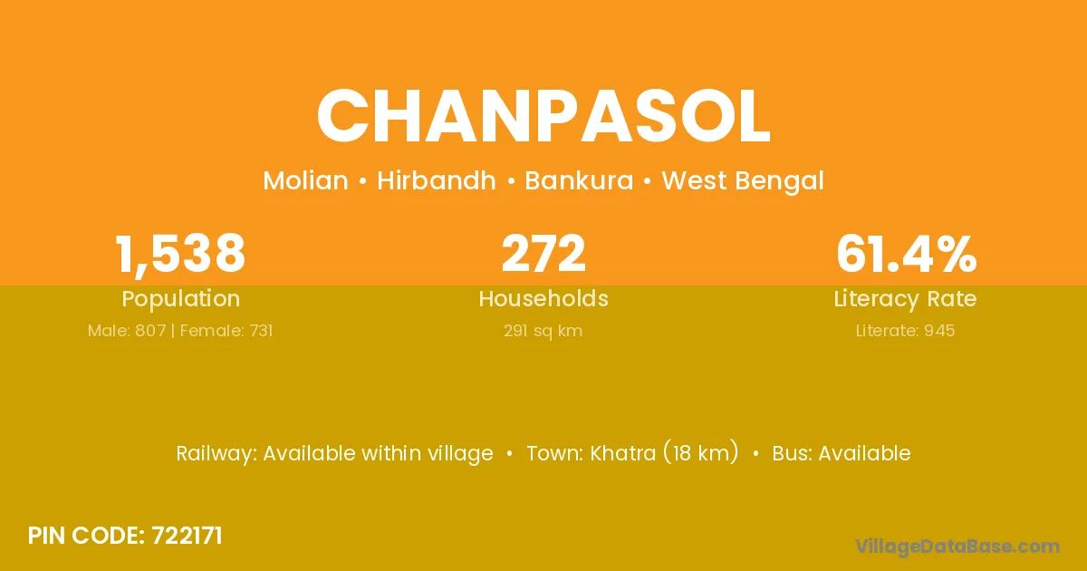 Midnapur (10 km) is the nearest town to Chanpasol village for major economic activities and is located approximately 10 km away.