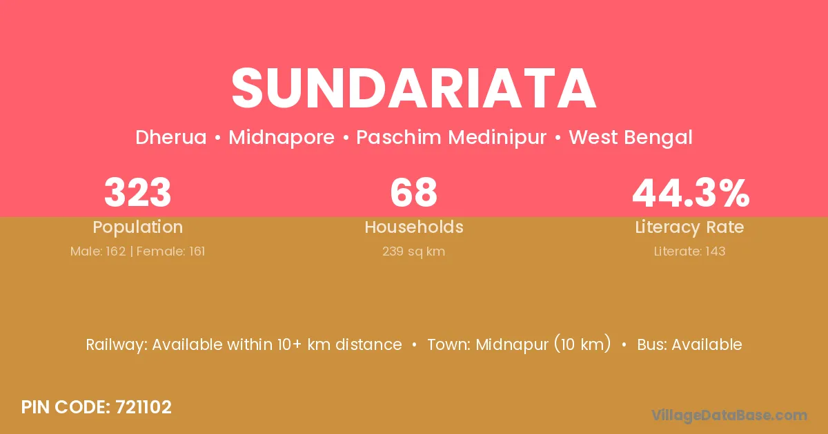 Midnapur (10 km) is the nearest town to Sundariata village for major economic activities and is located approximately 10 km away.