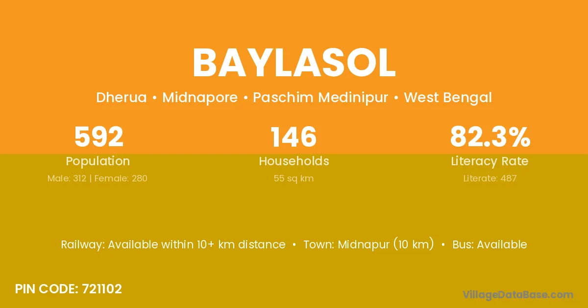 Midnapur (10 km) is the nearest town to Baylasol village for major economic activities and is located approximately 10 km away.