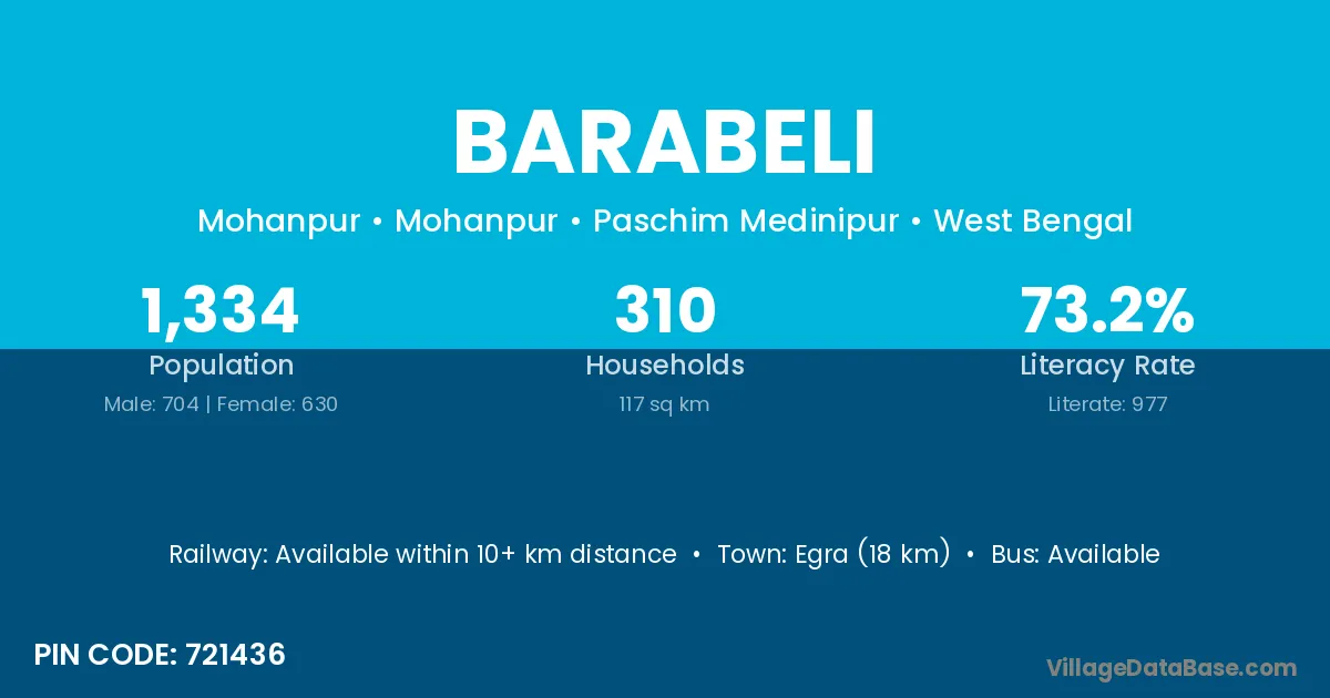 Egra (18 km) is the nearest town to Barabeli village for major economic activities and is located approximately 18 km away.