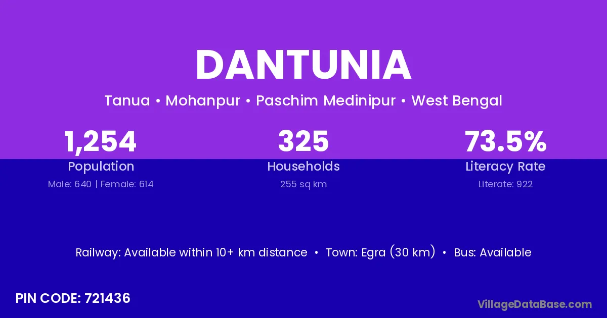 Dantunia village is located in the Mohanpur Subdivision of the Paschim Medinipur district in West Bengal.