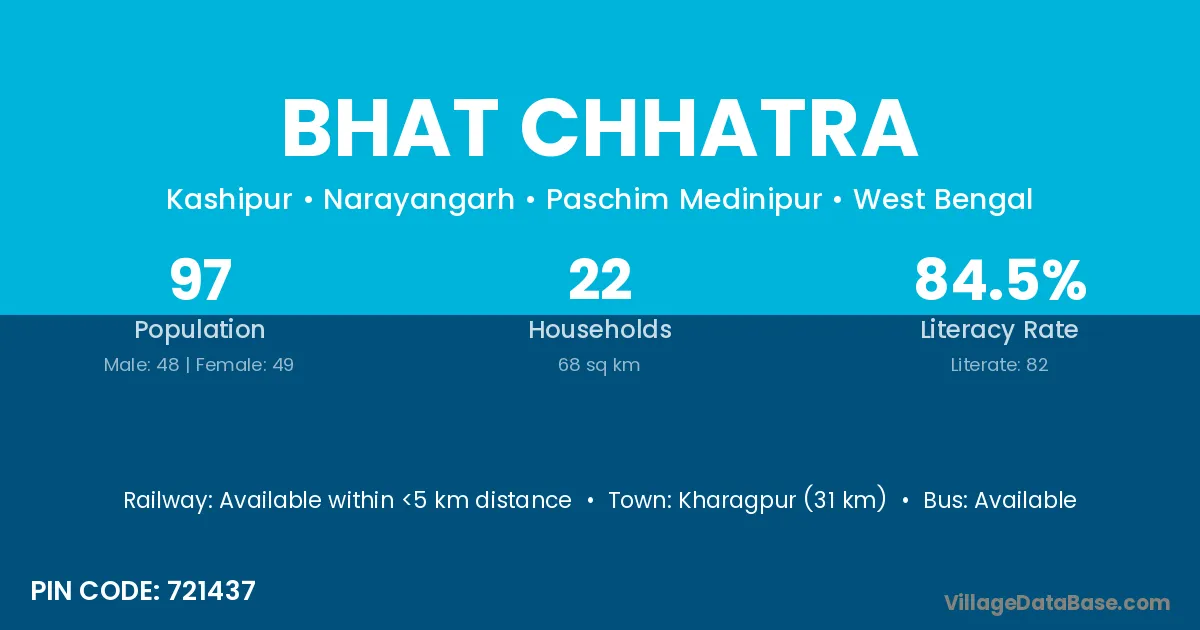 Kharagpur (31 km) is the nearest town to Bhat Chhatra village for major economic activities and is located approximately 31 km away.