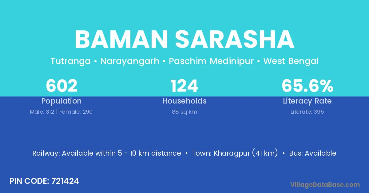 According to Census 2011 information, the village code of Baman Sarasha village is 721424.