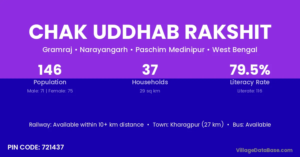 Kharagpur (27 km) is the nearest town to Chak Uddhab Rakshit village for major economic activities and is located approximately 27 km away.