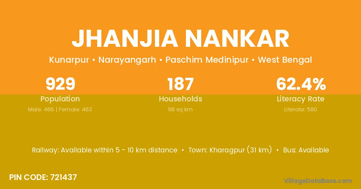 Kharagpur (31 km) is the nearest town to Jhanjia Nankar village for major economic activities and is located approximately 31 km away.