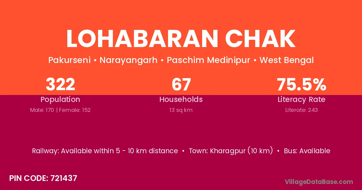 Kharagpur (10 km) is the nearest town to Lohabaran Chak village for major economic activities and is located approximately 10 km away.