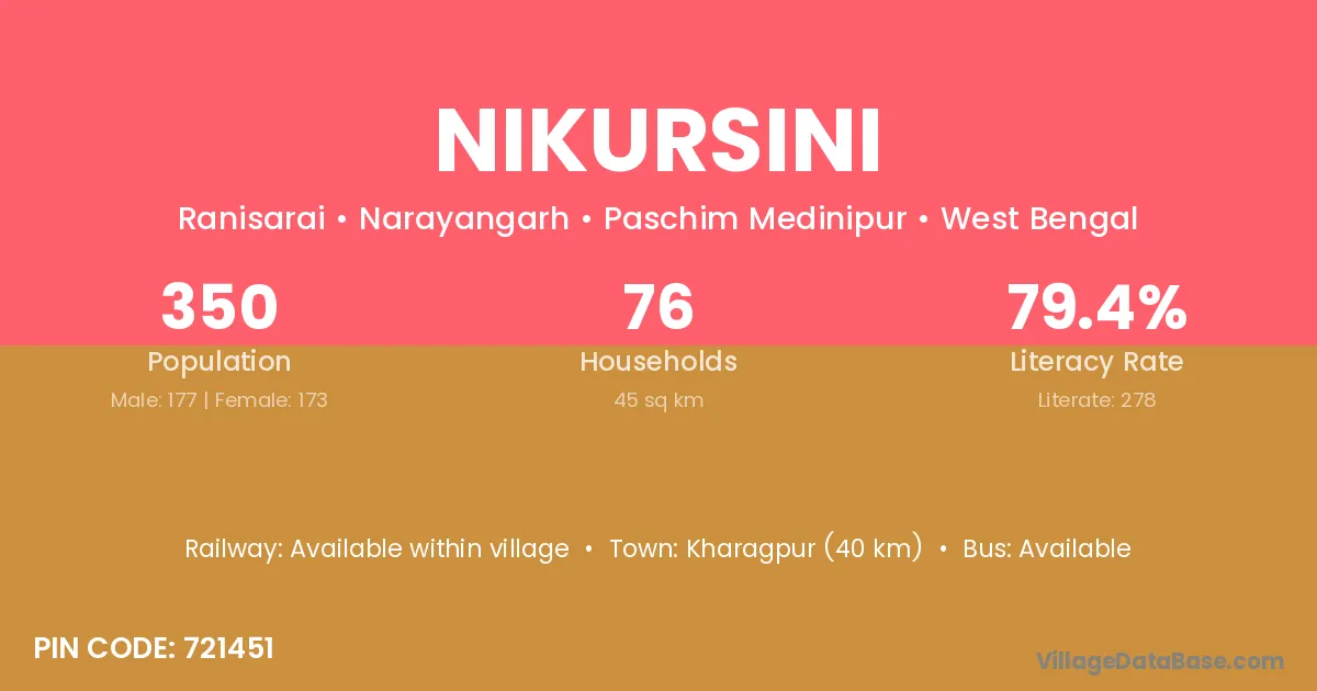 Nikursini village is located in the Narayangarh Subdivision of the Paschim Medinipur district in West Bengal.