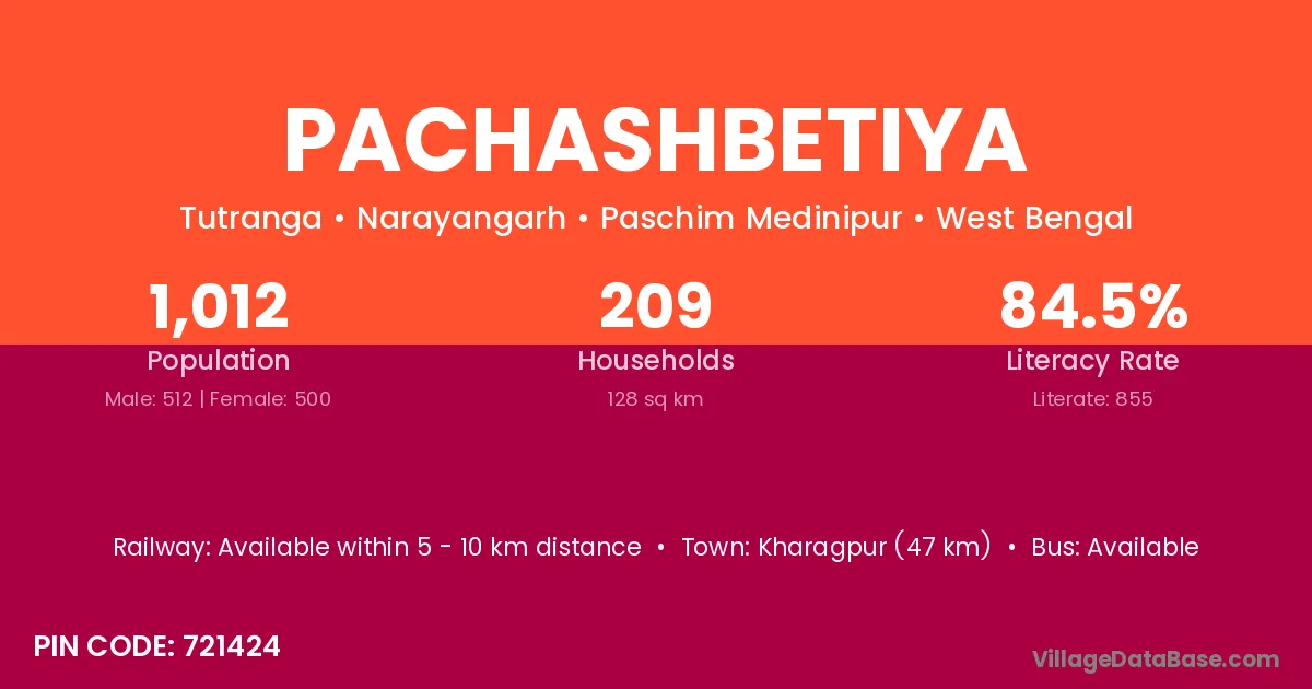 According to Census 2011 information, the village code of Pachashbetiya village is 721424.