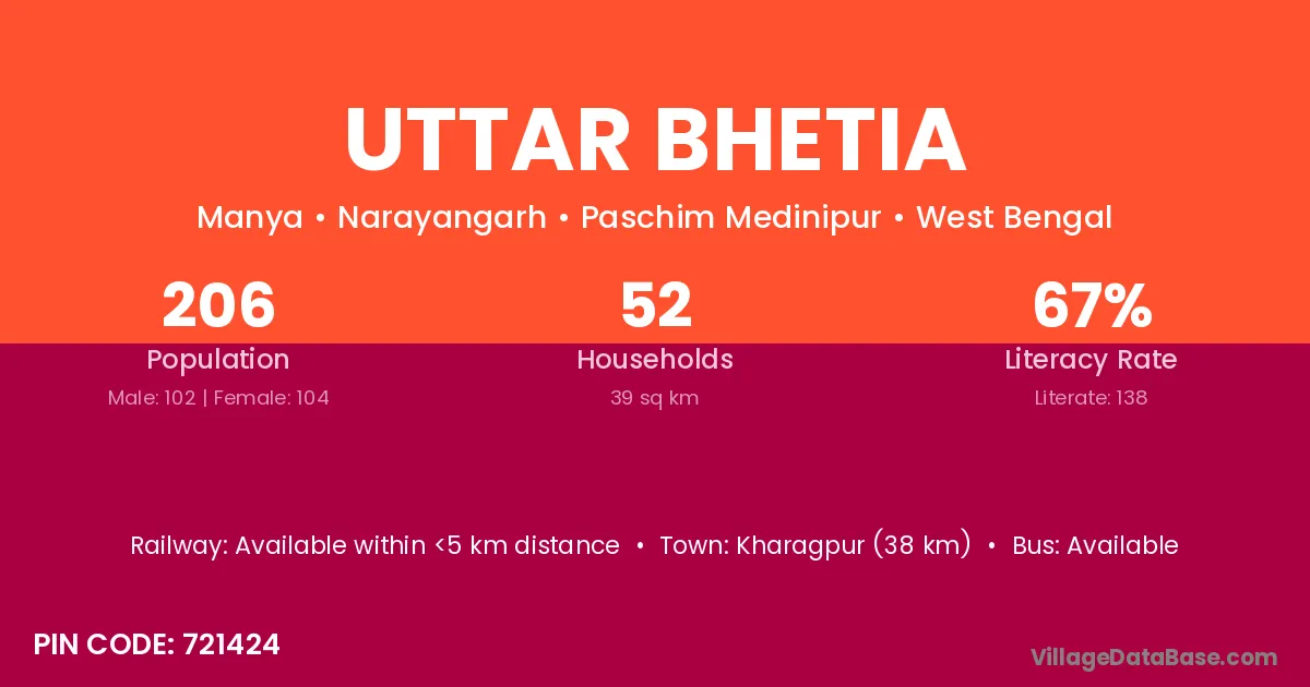 According to Census 2011 information, the village code of Uttar Bhetia village is 721424.