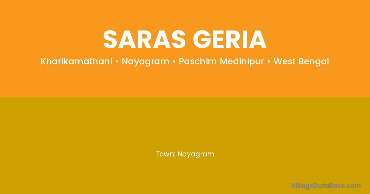 Saras Geria village is located in the Nayagram Subdivision of the Paschim Medinipur district in West Bengal.