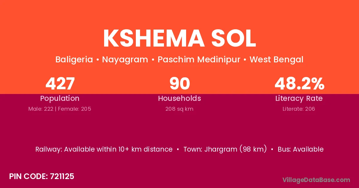 Kshema Sol village is located in the Nayagram Subdivision of the Paschim Medinipur district in West Bengal.