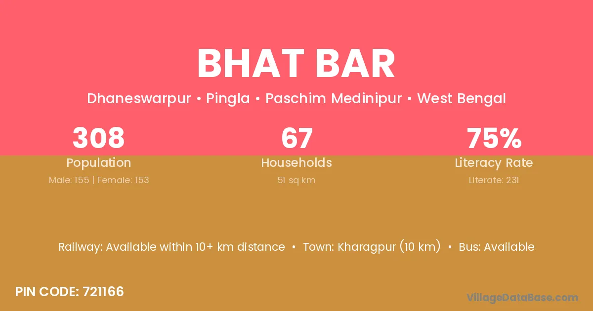 Bhat Bar village is located in the Pingla Subdivision of the Paschim Medinipur district in West Bengal.