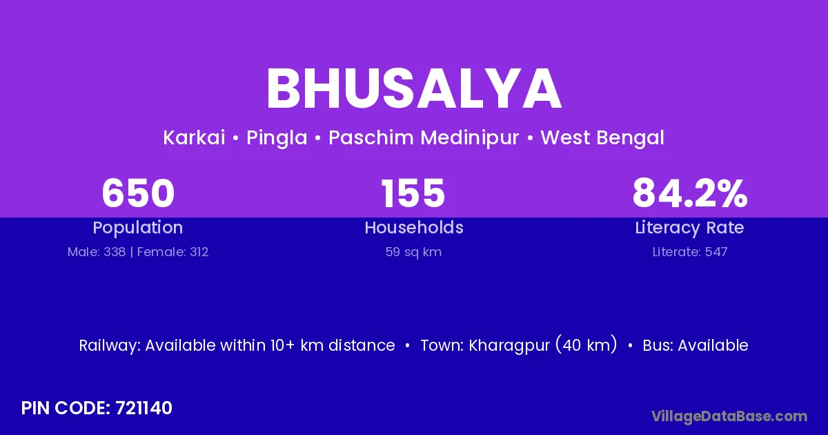 Bhusalya village is located in the Pingla Subdivision of the Paschim Medinipur district in West Bengal .
