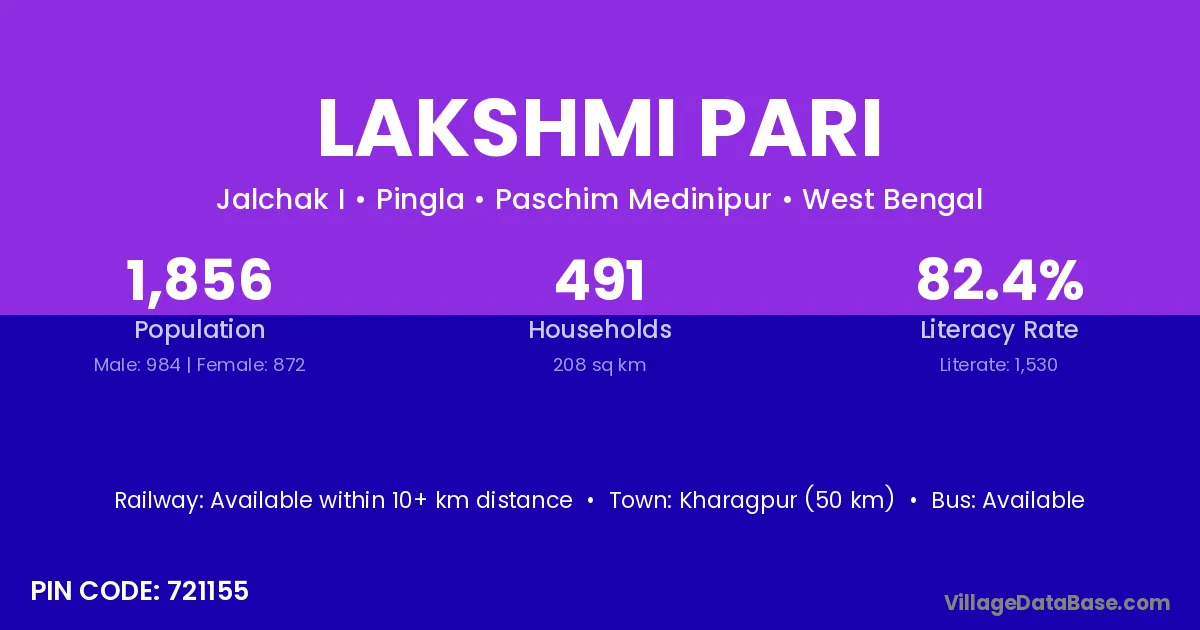 Lakshmi Pari village is located in the Pingla Subdivision of the Paschim Medinipur district in West Bengal.