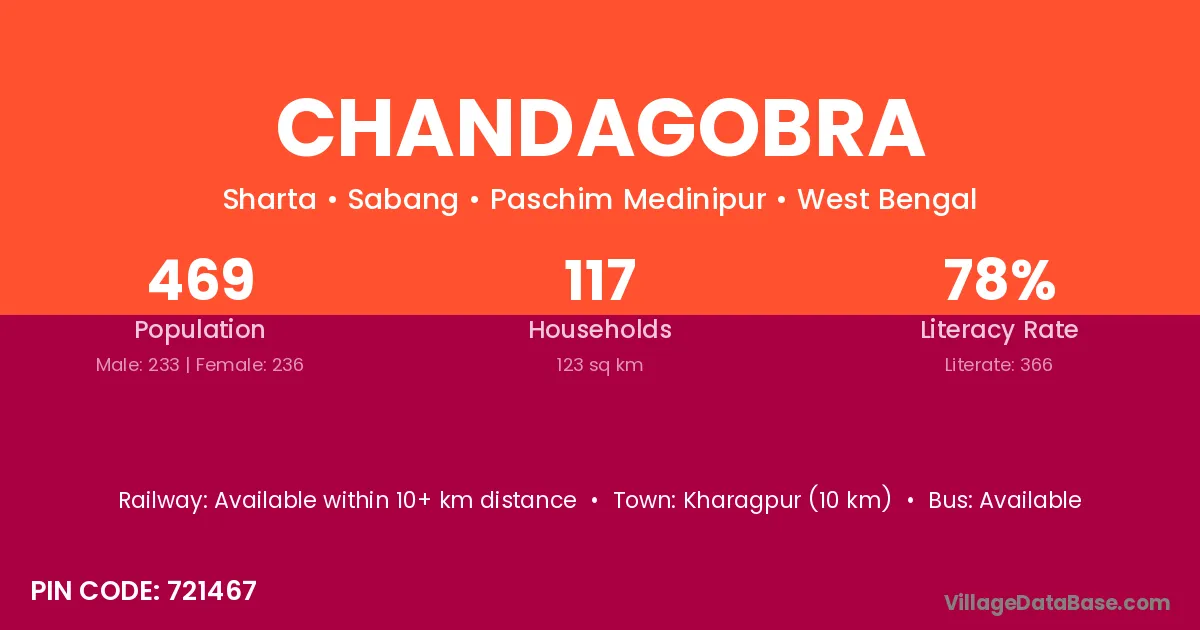 Kharagpur (10 km) is the nearest town to Chandagobra village for major economic activities and is located approximately 10 km away.