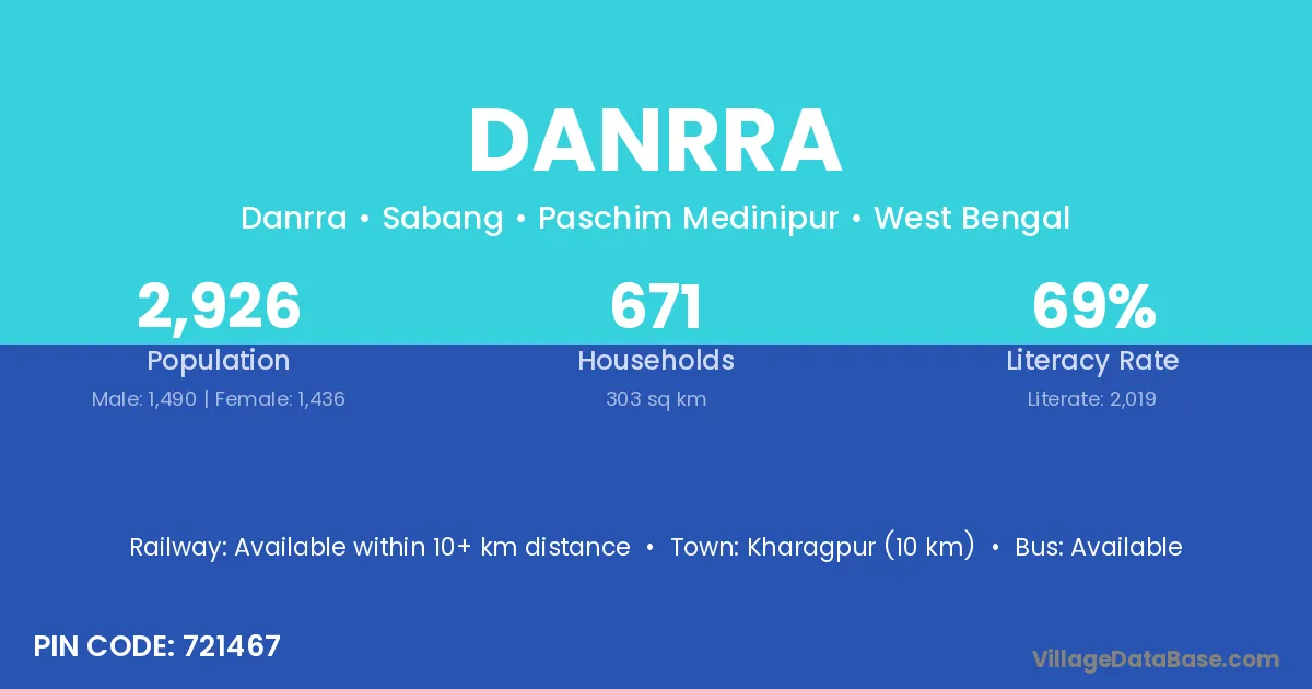Kharagpur (10 km) is the nearest town to Danrra village for major economic activities and is located approximately 10 km away.