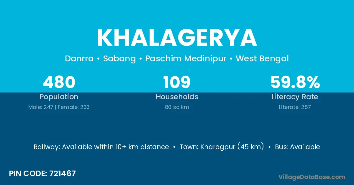 Khalagerya village is located in the Sabang Subdivision of the Paschim Medinipur district in West Bengal.