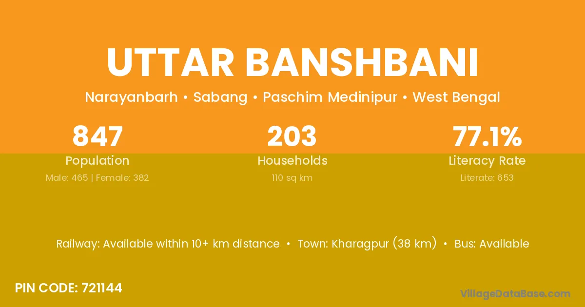 According to Census 2011 information, the village code of Uttar Banshbani village is 721144.