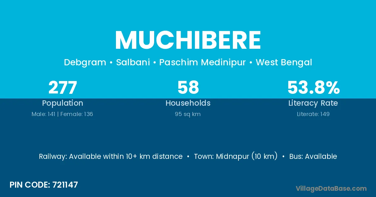 Midnapur (10 km) is the nearest town to Muchibere village for major economic activities and is located approximately 10 km away.