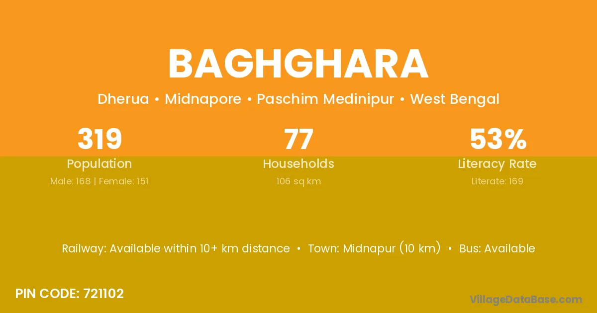 Midnapur (26 km) is the nearest town to Baghghara village for major economic activities and is located approximately 26 km away.