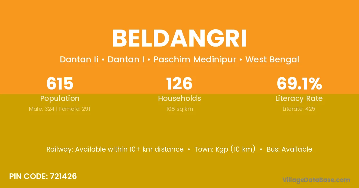 Salbani is the nearest town to Beldangri village for major economic activities