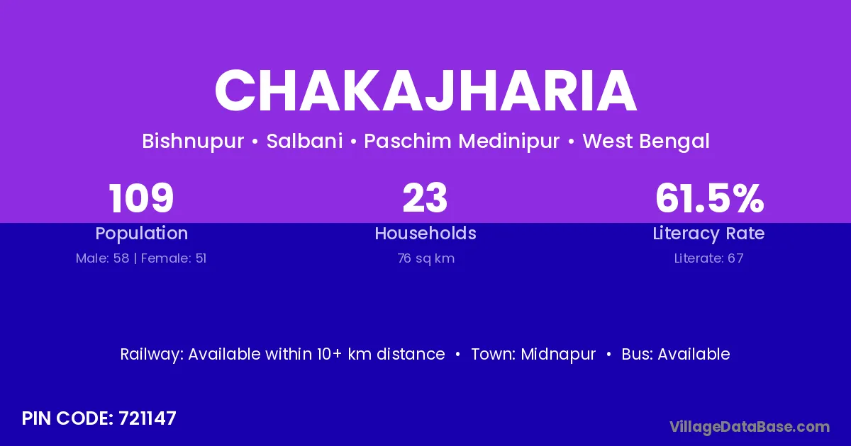 Chakajharia village is located in the Salbani Subdivision of the Paschim Medinipur district in West Bengal .