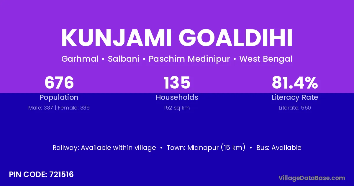 Kunjami Goaldihi village is located in the Salbani Subdivision of the Paschim Medinipur district in West Bengal.
