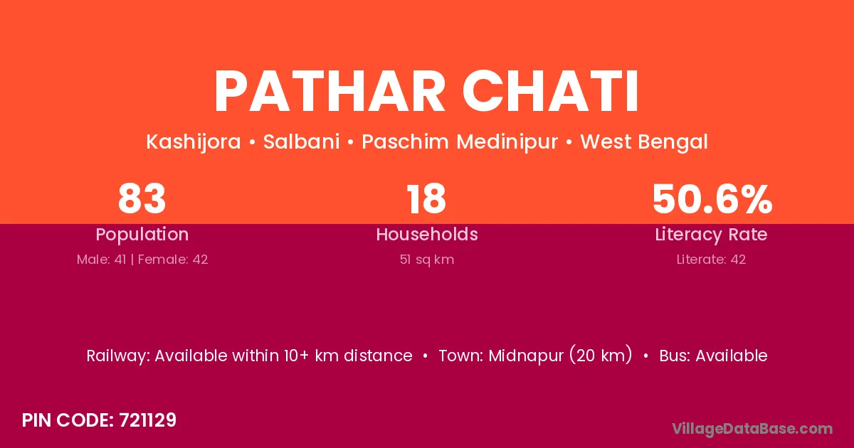 Midnapur (20 km) is the nearest town to Pathar Chati village for major economic activities and is located approximately 20 km away.