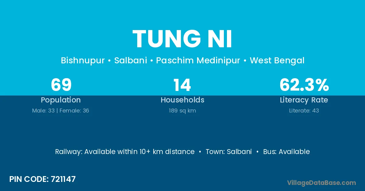Tung Ni village is located in the Salbani Subdivision of the Paschim Medinipur district in West Bengal .