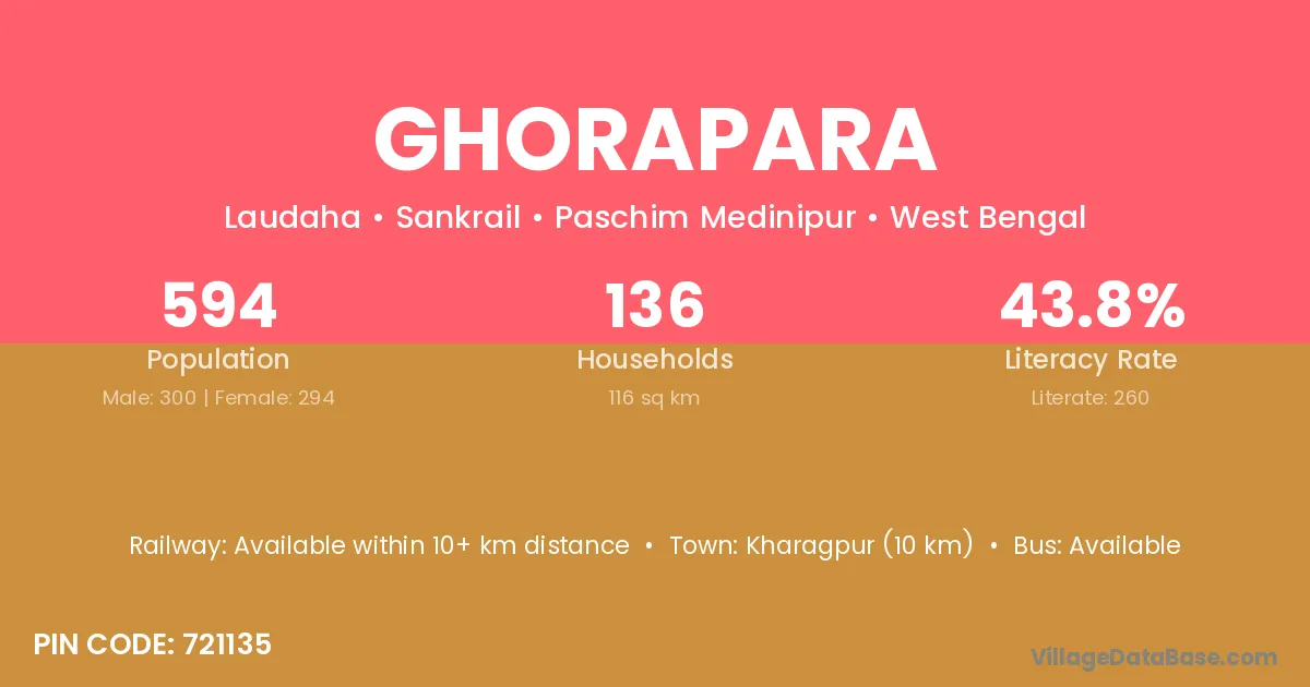 According to Census 2011 information, the village code of Ghorapara village is 721135.