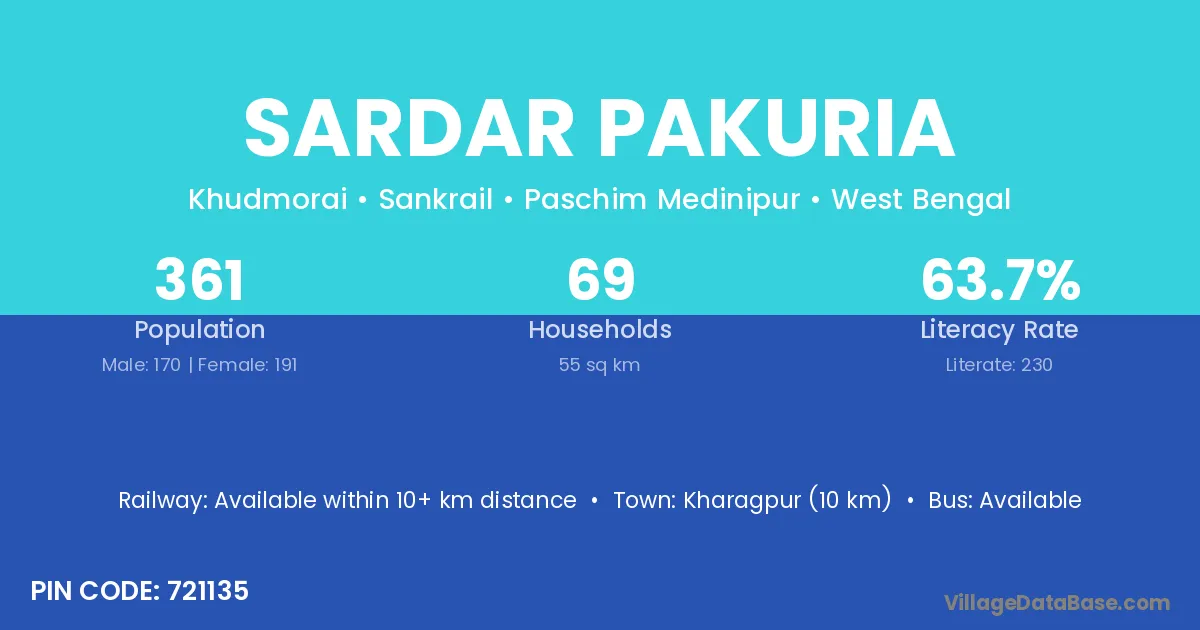 Sardar Pakuria village is located in the Sankrail Subdivision of the Paschim Medinipur district in West Bengal.