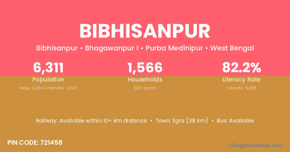 Egra (38 km) is the nearest town to Bibhisanpur village for major economic activities and is located approximately 38 km away.