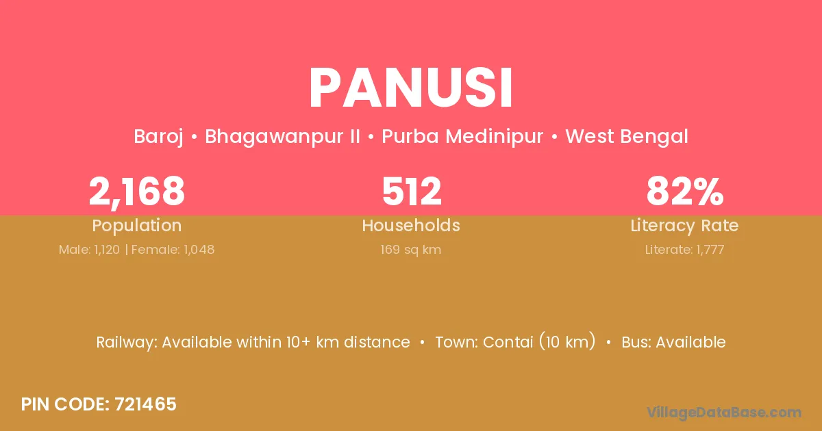 Contai (10 km) is the nearest town to Panusi village for major economic activities and is located approximately 10 km away.