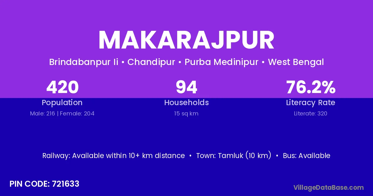 Tamluk (10 km) is the nearest town to Makarajpur village for major economic activities and is located approximately 10 km away.