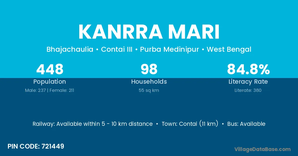 Contai (11 km) is the nearest town to Kanrra Mari village for major economic activities and is located approximately 11 km away.