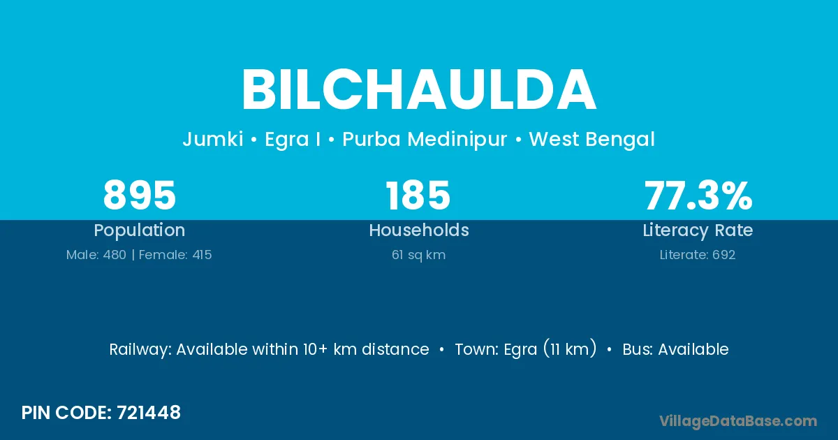 Egra (11 km) is the nearest town to Bilchaulda village for major economic activities and is located approximately 11 km away.