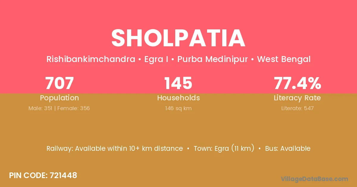Egra (11 km) is the nearest town to Sholpatia village for major economic activities and is located approximately 11 km away.