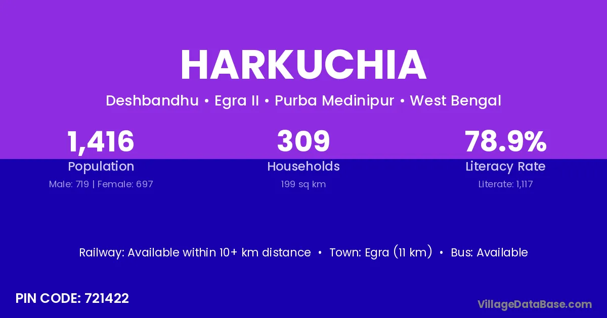 Egra (11 km) is the nearest town to Harkuchia village for major economic activities and is located approximately 11 km away.